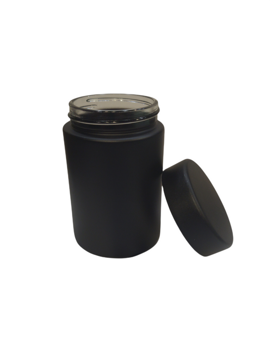 4 oz Glass Jar (Child Resistant) | Matte Black Jar w/ Black Plastic Screw Lid | 100pc Carton