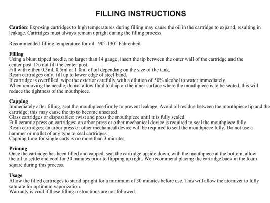 Glass Vaporizer Cartridge /w Ceramic Coil & 2mm hole (Press-on Tips) | 1.0ml | 100 Pack Carton
